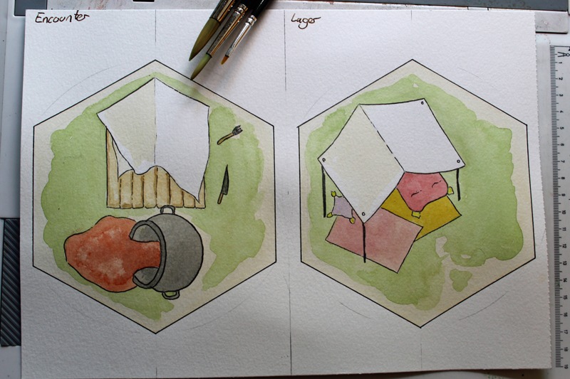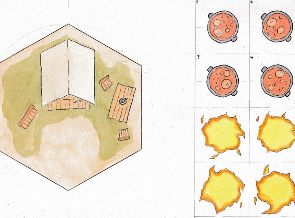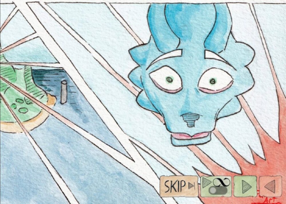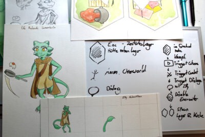Das Storytelling im Game wird neben Environmental-Storytelling auch via Cut-Scenes gezeigt. Die Cut-Scenes sind geführte Comic Szenen welche ich mit Aquarell-Farben und Tinte auf Wasserfarbepapier erstelle.