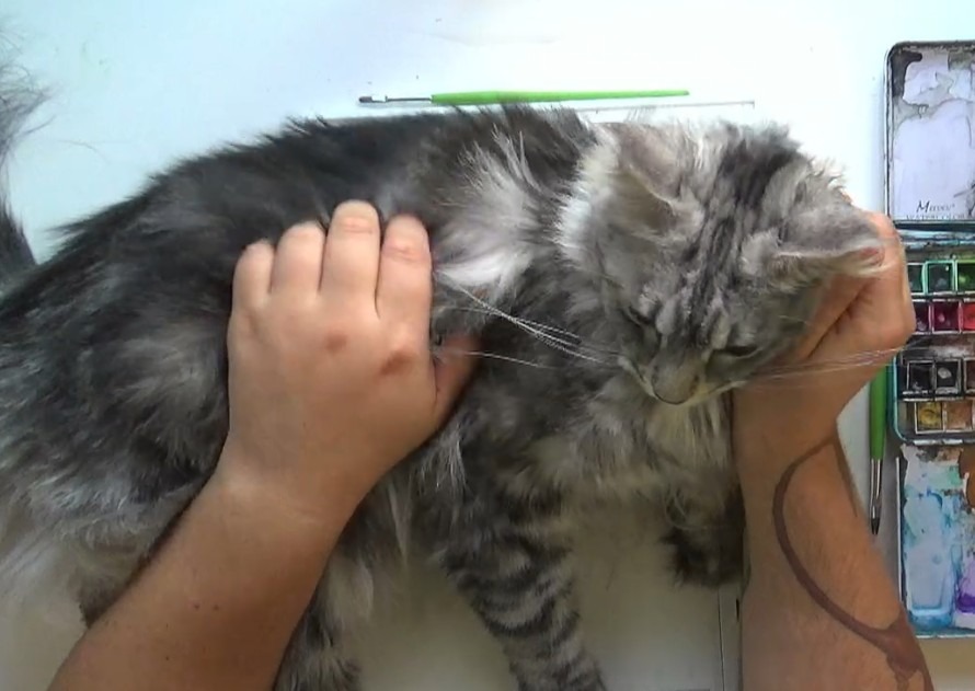 Natürlich bekomme ich auch tatkräftige Unterstützung bei der Arbeit von meiner Hilfstkraft. Hier ist Queenie, meine fusselige Mainecoon Mitarbeiterin. Ich wette im Spiel werden hier und da später Katzenhaare erkennbar sein, die ich nicht gesehen habe und mit eingebaut habe. Aber das gehört dazu